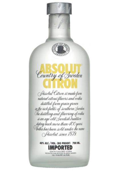 Elke druppel Absolut Vodka is afkomstig uit Åhus, in het zuiden van Zweden. Het product wordt gemaakt van de beste wintertarwe en water uit een eigen bron. Absolut Vodka is honderden keren gedistilleerd, middels het continue distillatieproces, waardoor alle onzuiverheden verwijderd worden tot het punt van perfectie. De levendige en frisse aroma’s van Absolut Vodka zorgen voor een duidelijke en goed gebalanceerde citroenwodka. In de wodka proef je noten van sappige citroen en sterke limoen die de alcoholsmaak wat verzachten.