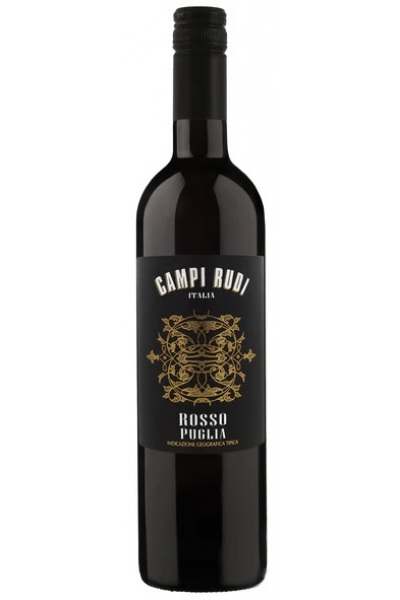 Campi Rudi Rosso Puglia is een rode wijn, gemaakt van drie 'heilige' druiven uit Puglia, aangevuld met een rijzende ster die de wijn net die moderne touch geeft. Deze blend bestaat namelijk uit Negromaro, Primitivo, Nero di Troya en Sangiovese. De eerste drie druiven komen van één van de oudste wijnstokken van centraal-noordelijk Puglia. De Negroamaro zorgt voor die typische Italiaanse smaak, terwijl de Primitivo zorgt voor diep en rijp donker fruit. Nero di Troya zorgt voor de kracht, maar ook vriendelijkheid. Sinds tien jaar is ook de Sangiovese aangeplant in Puglia. Deze druif doet het hier verrassend goed en zorgt vooral voor het karakteristieke rode fruit in de wijn. Al deze druiven bij elkaar zorgen ervoor dat je al snel verlangt naar het volgende glas.
