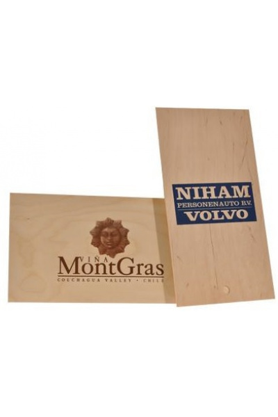 De deksels van onze wijnkisten kunnen worden voorzien van een zeefdruk bedrukking. Een bedrijfslogo of een tekstuele uiting geven de wijnkist dan net die extra attentie mee. Geef uw wensen door per e-mail (info@wijngemak.nl). Je hoort dan van ons de mogelijkheden en de kosten hiervan. Wat betreft deze gepersonaliseerde wijnkisten garanderen wij een levertijd van 2 – 3 weken na goedkeuring van het ontwerp.