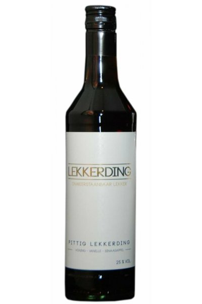 Pittig Lekkerding is een likeur met dezelfde honing, vanille en sinaasappelmix maar is met 25% alcohol echt de sterkere versie van LEKKERDING. Een soepele, niet stroperige likeur met een volle smaak, een must om te proeven voor de echte likeur drinkers.